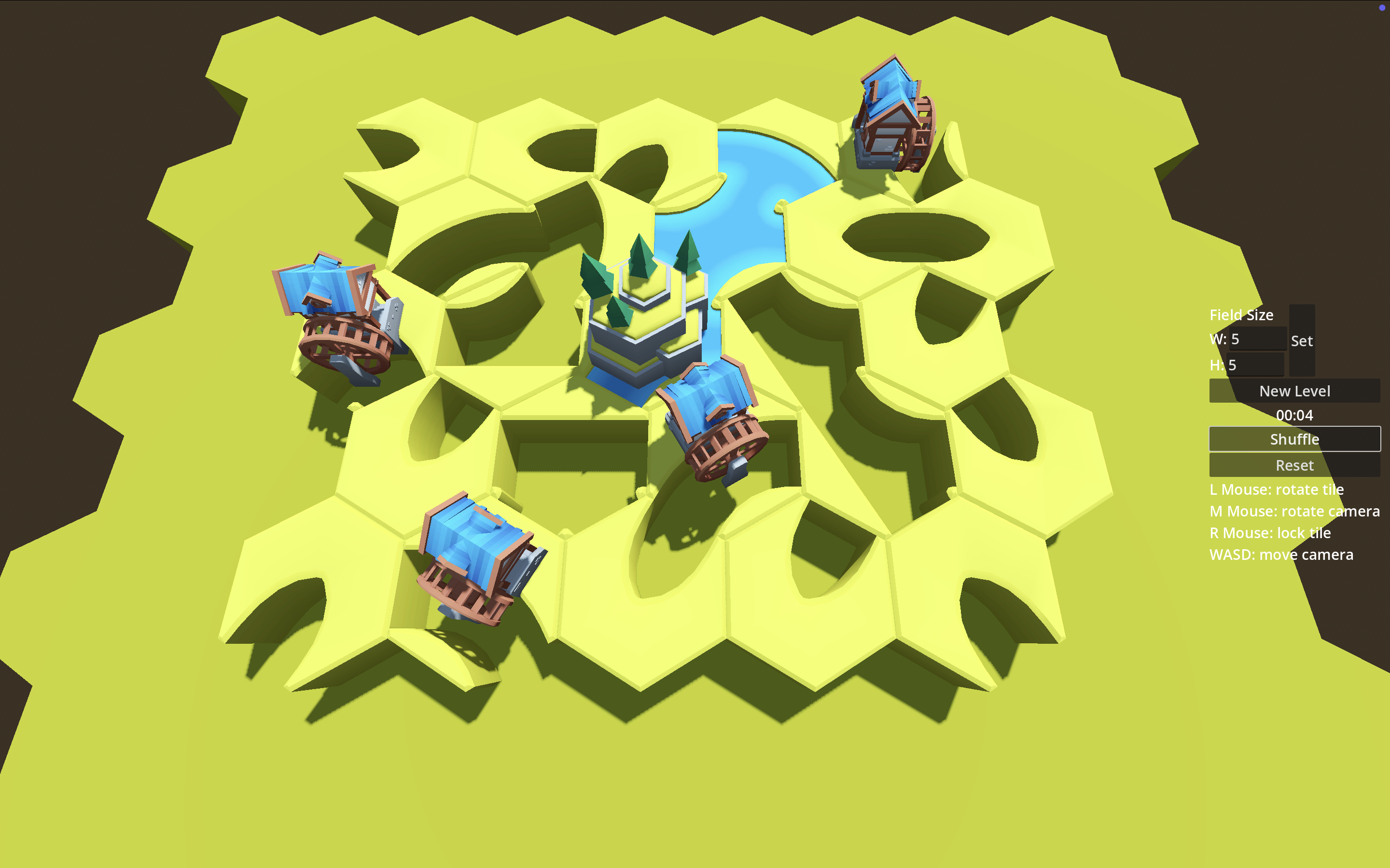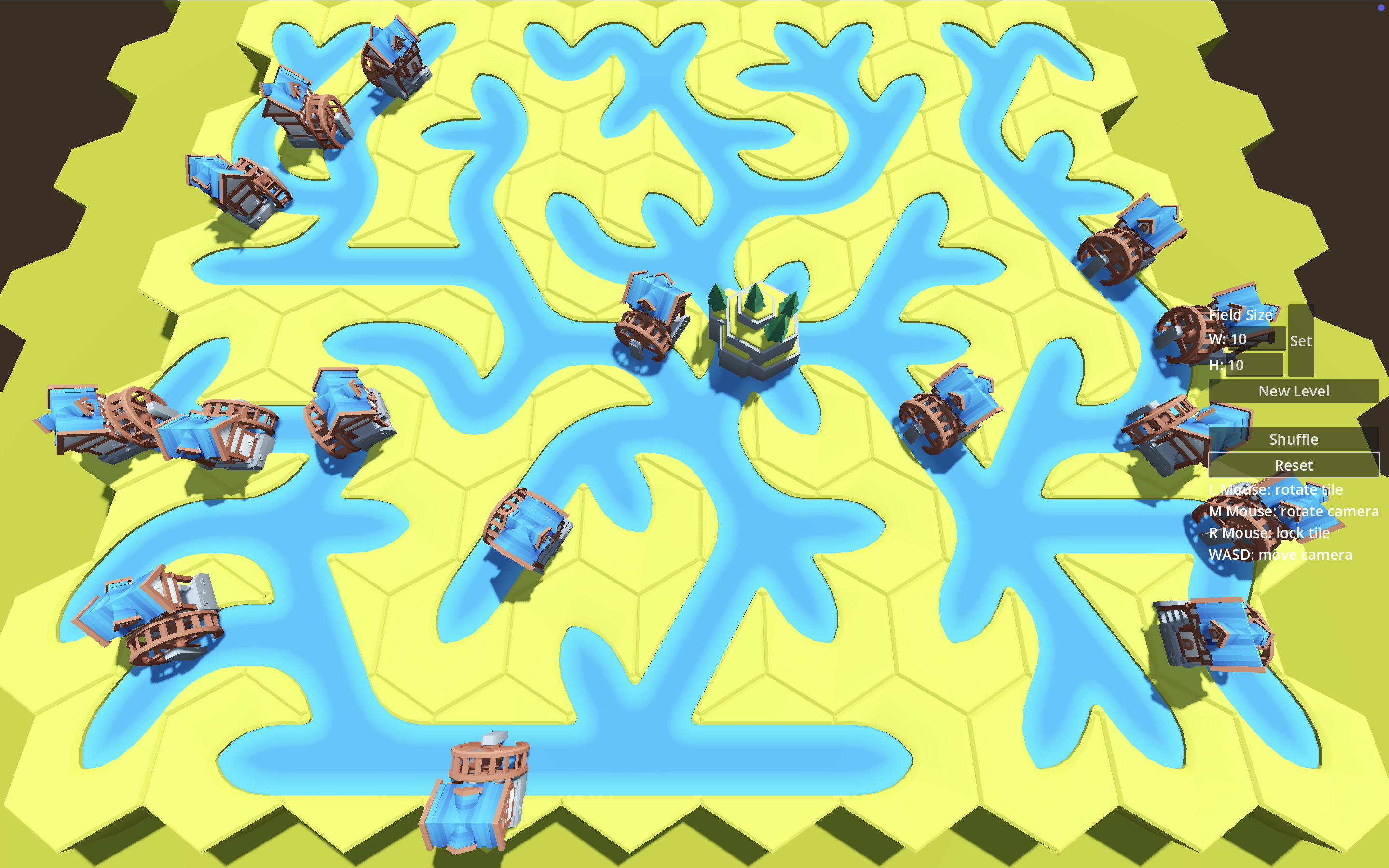 The world of Riverside has gotten into a bit of a scramble, help out by rotating the river beds back into place and power up the watermills.