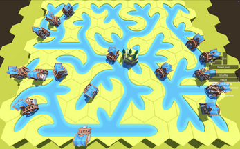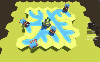 Spin the tiles to create a singular connected network of rivers with no open ends. Tiles connected to the mountain spring water source in the center fill up with water to help visualise the connection.